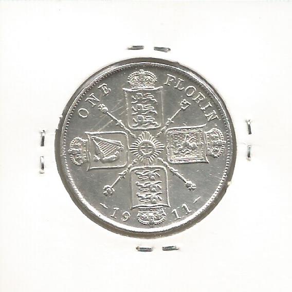 Moeda de 1 Florin de 1911 de Inglaterra - Rei George V - PRATA