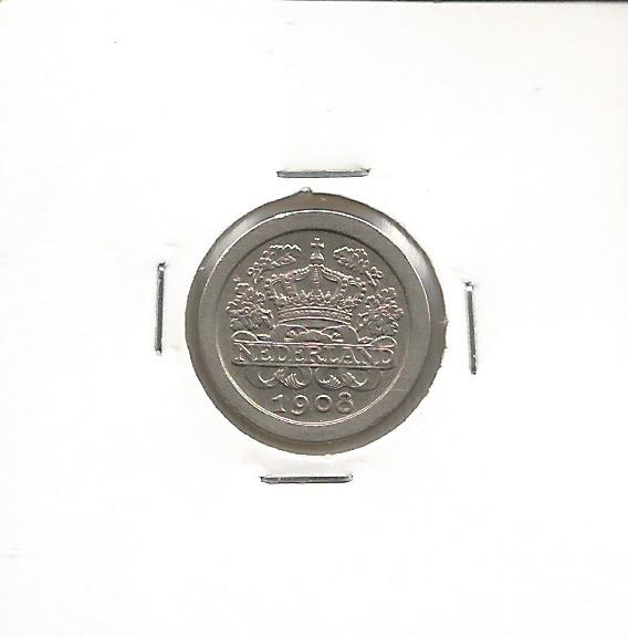 Moeda de 5 Cents de 1908 da HOLANDA - BELA