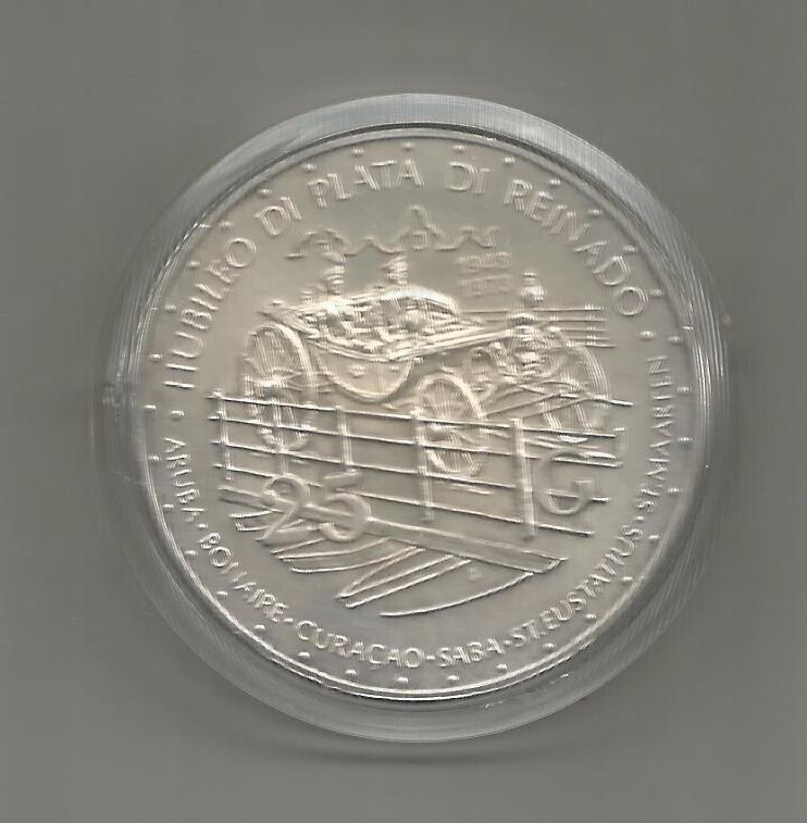 Moeda de 25 Gulden de 1973 da Holanda em Prata, comemorativa do (jubileu do reinado da Rainha Juliana), no estado de conservação de (SOBERBA). Moeda de grandes dimensões, 45mm. Por favor veja as imagens. Se clicar sobre as imagens estas aumentarão de tamanho. A Qualidade tem sempre OUTRO valor.