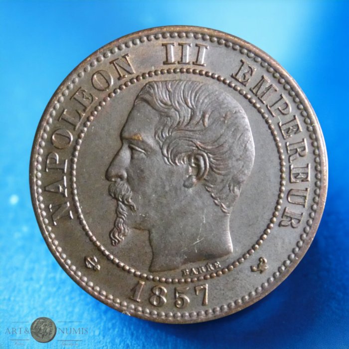 Moeda de 2 Centimos 1857 de França de Napoleão III, (Lille) em Bronze, no estado de conservação de (SOBERBA). Foram cunhados 2.249.770 exemplares. A moeda está impecável e neste estado de conservação é muito dificil de encontrar. Por favor veja as imagens. Se clicar sobre as imagens estas aumentarão de tamanho. A Qualidade tem sempre OUTRO valor.