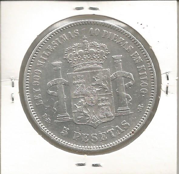 Moeda de 1 Duro (5 Pesetas) de 1875 de ESPANHA - Rei Alfonso XII - PRATA (indisponivel)