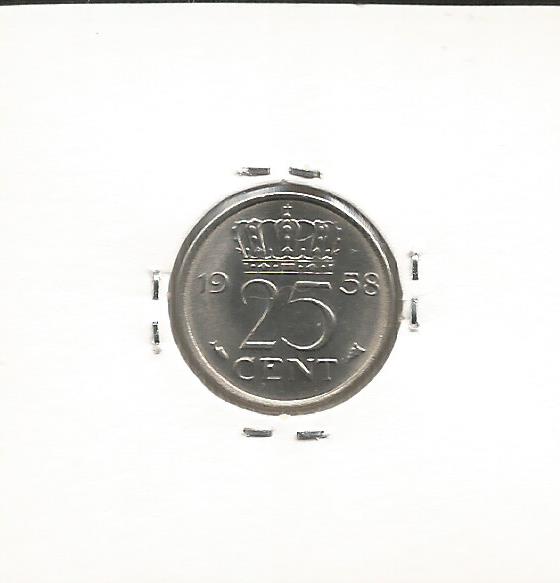 Moeda de 25 Cents de 1958 da HOLANDA - SOBERBA
