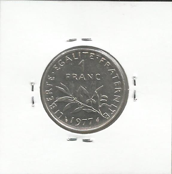 Moeda de 1 Franco de 1977 de França, em Cupro-Níquel, no estado de conservação de (BELA). Por favor veja as imagens. Se clicar sobre as imagens elas aumentarão de tamanho. Coleccione Moedas por Datas, por Países, por Metais ou por Temas.