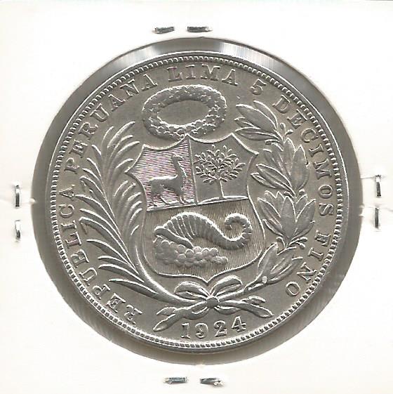 Moeda de 1 Sol de 1924 do PERU - PRATA