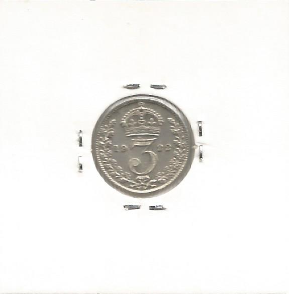 Moeda de 3 Pence de 1922 de Inglaterra - PRATA